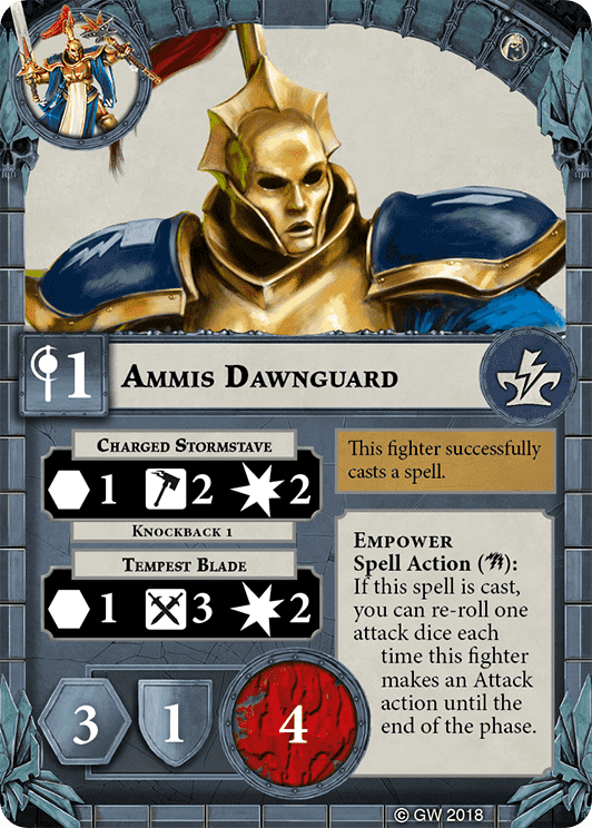 Gambit Spell ( Channel): If this spell is cast, choose an enemy fighter within four hexes of the caster. That fighter has -1 Wounds (to a minimum of 1). This spell persists until that fighter is out of action. |