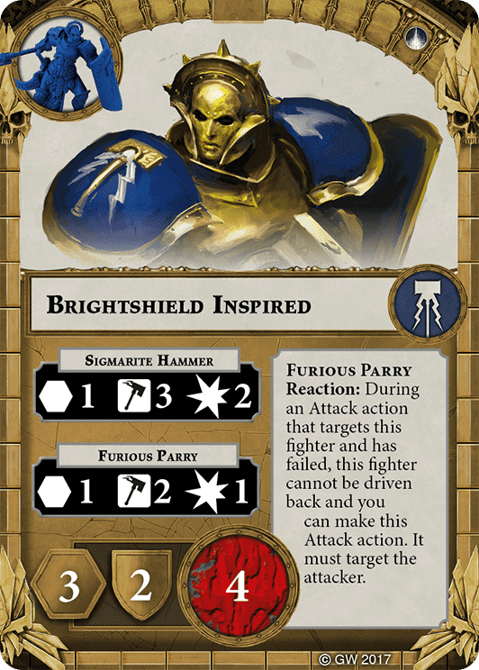 Reaction: During an Attack action that targets this fighter and fails, roll an attack dice. On a roll of Smash or Critical success this fighter cannot be driven back and they can make an Attack action. It must target the attacker. |