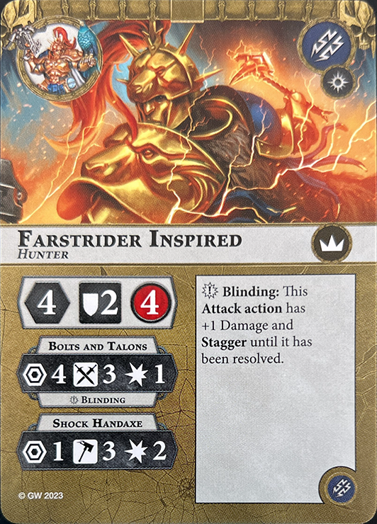 When this fighter makes a Charge action, their Attack actions gain Knockback 1 for that activation. | - | - |
