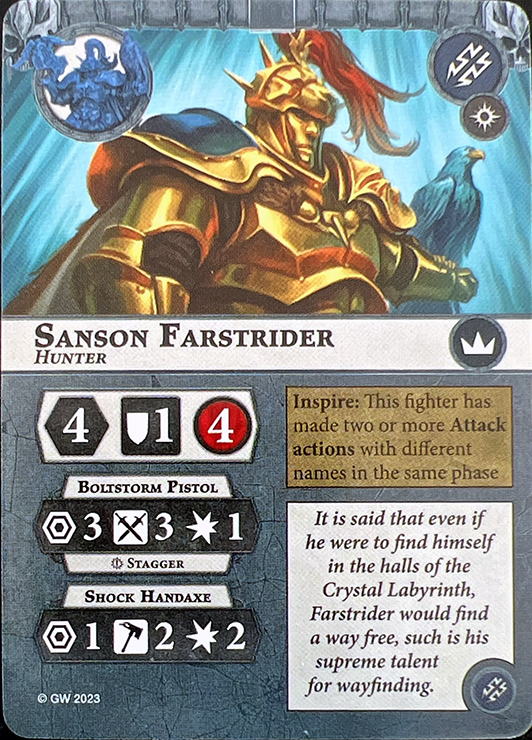 If this fighter is the last friendly fighter on the battlefield, they have +1 Defence and all of their Attack actions have +1 Dice. | - | - |
