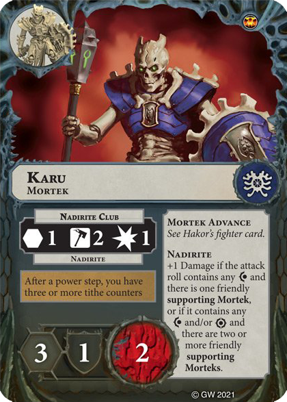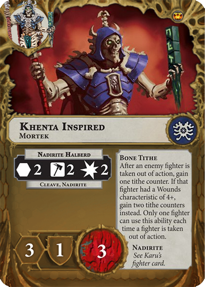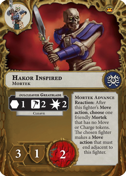 This fighter has the following cumulative benefits, depending on how many upgrades they have: 3+: +1 Wound and this fighter cannot be driven back. 5+: +1 Move 9+: This fighter's Attack actions have Innate ( Fury Smash). |