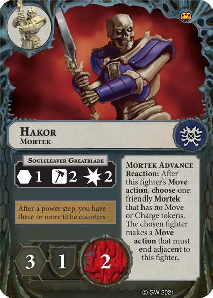 Score this in an end phase if three or more friendly Morteks are in one group in which each fighter is adjacent to one or more other fighters in that group. | 1 | - |