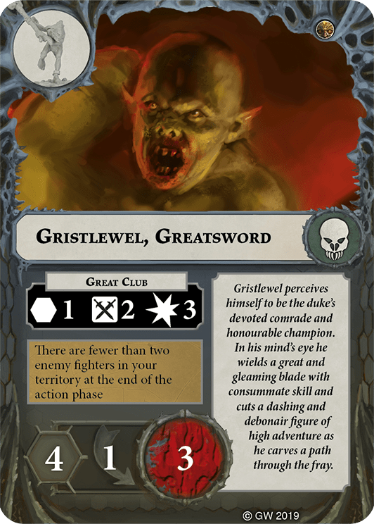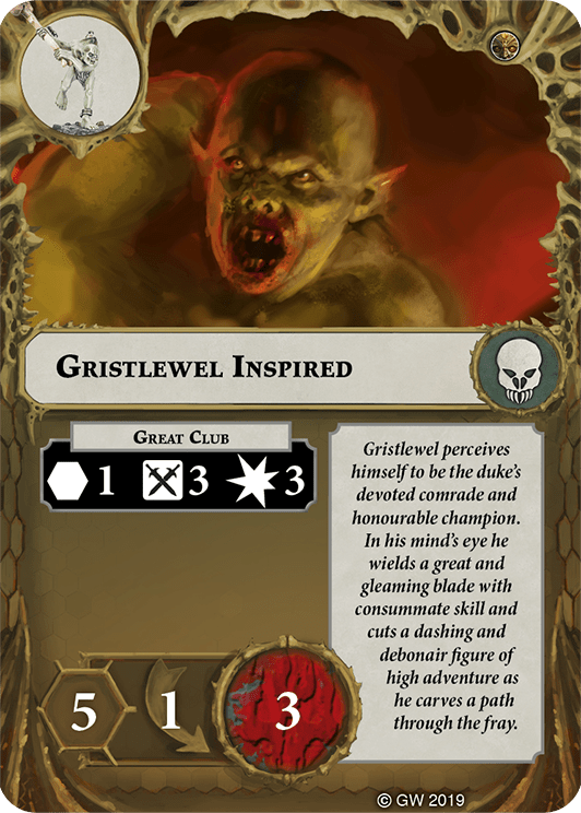 Take all the cards from your power discard pile that have the Grymwatch warband symbol. Shuffle them face down, then add the top card to your hand. Return the other cards to your power discard pile. | - | - |