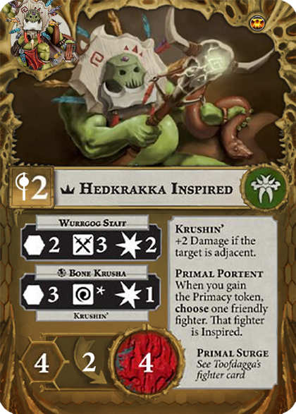 Reaction: Use this after a friendly fighter's activation in which that fighter made one or more failed Attack actions. If you have the Primacy token, discard the Primacy token, then that fighter makes one Attack action. Otherwise, Inspire that fighter. |