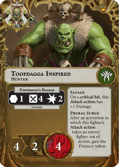Score this in an end phase if a surviving friendly fighter has a higher Wounds characteristic than each other surviving fighter. | 1 | - |