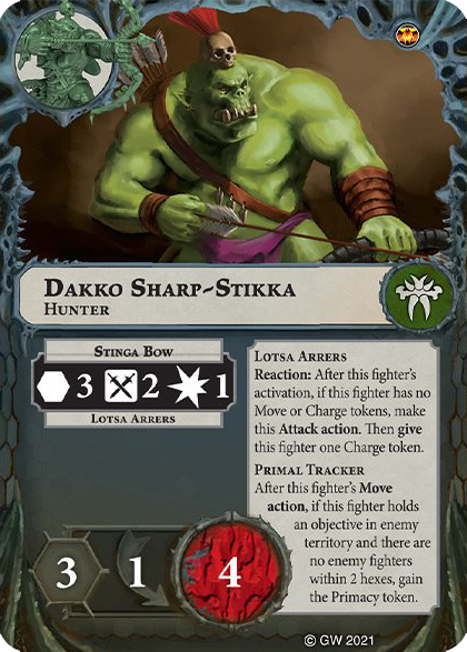 Surge: Score this immediately after an activation in which a friendly fighter with one or more wound counters made one or more successful Attack actions. | 1 | - |