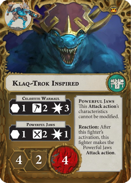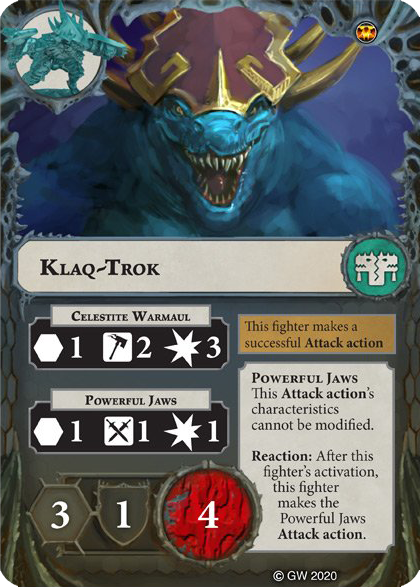 This fighter is a Hunter. This fighter cannot be a Quarry. Each enemy fighter is a Quarry. You can re-roll one dice in this fighter's attack rolls if the target is a Quarry. | - | Klaq-Trok |