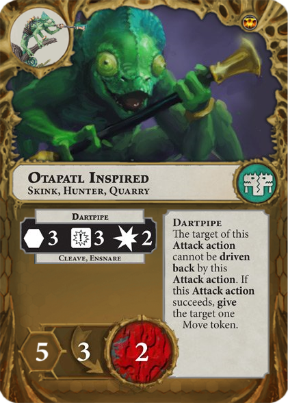 Remove a friendly Otapatl from the battlefield. That fighter is not out of action. This card persists until the end of the round. When this card no longer persists, place that fighter in any empty hex not adjacent to any enemy fighters. You cannot play this card in round 3. | - | - |