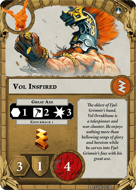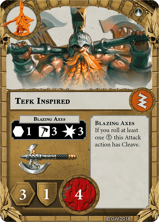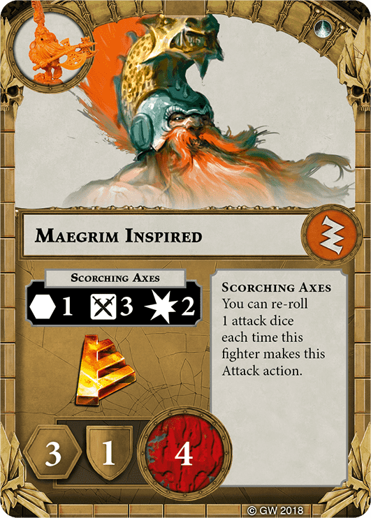 (Errata update) When this fighter makes their first Attack action in an activation or power step (other than an Attack action made as part of a Charge action), you can choose for that Attack action to have +2 Dice. If you do, this fighter cannot be activated again this phase. | - | - |