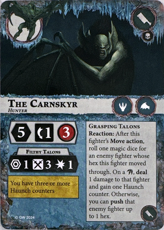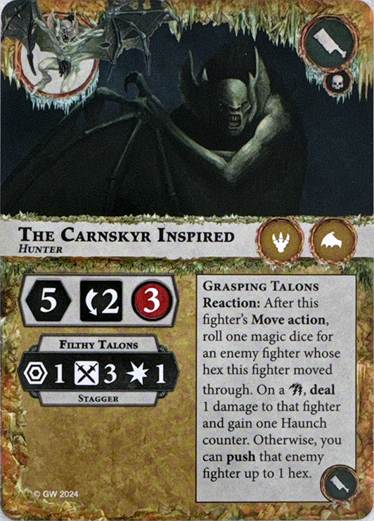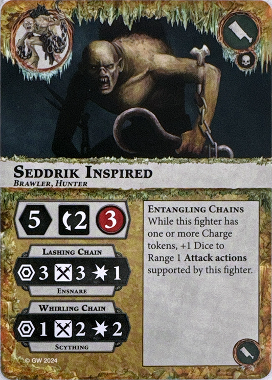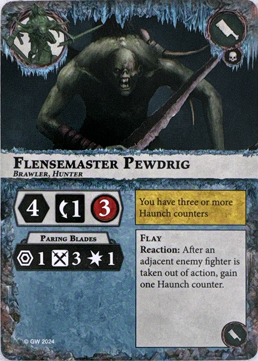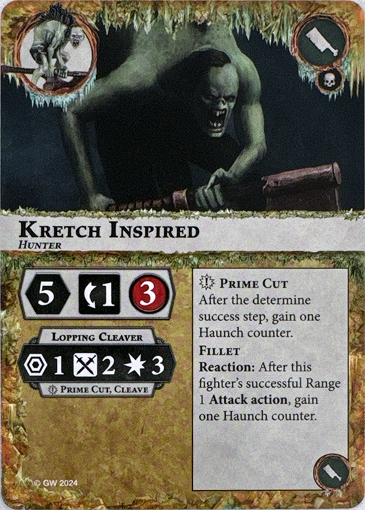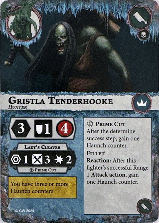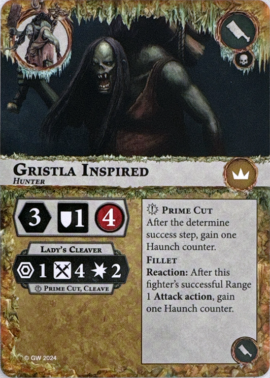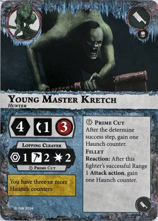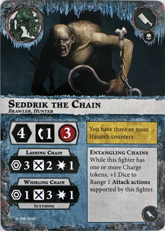 Rolls of Block are successes in this fighter's defence rolls.Action: You gain a Haunch counter, then give this fighter a Charge token. |