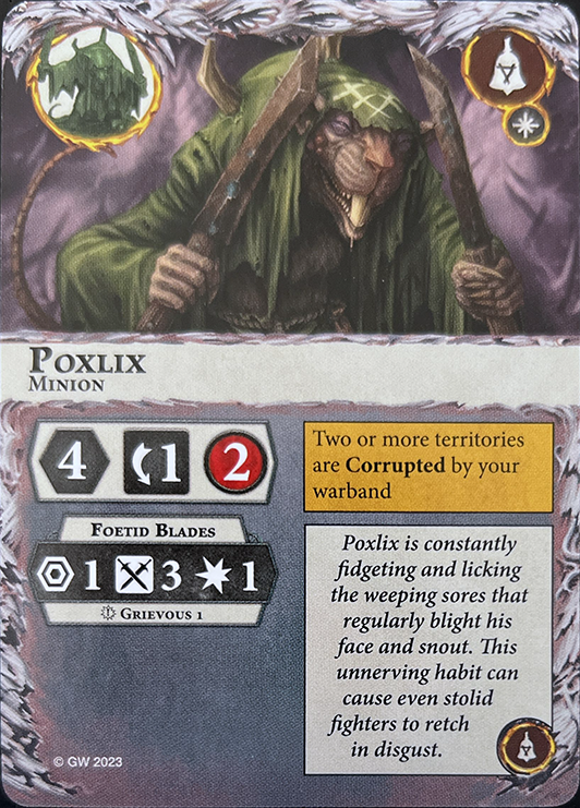 Score this in an end phase if three or more territories are Corrupted by your warband. | 3 | - |