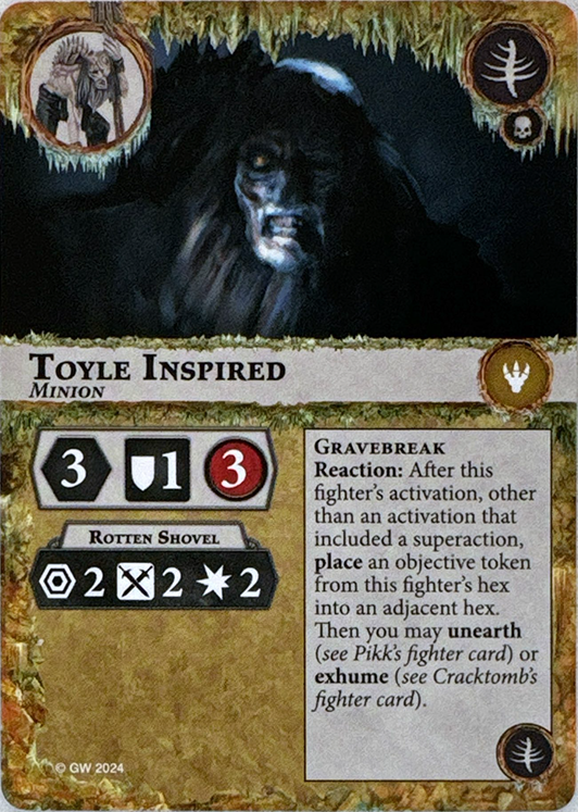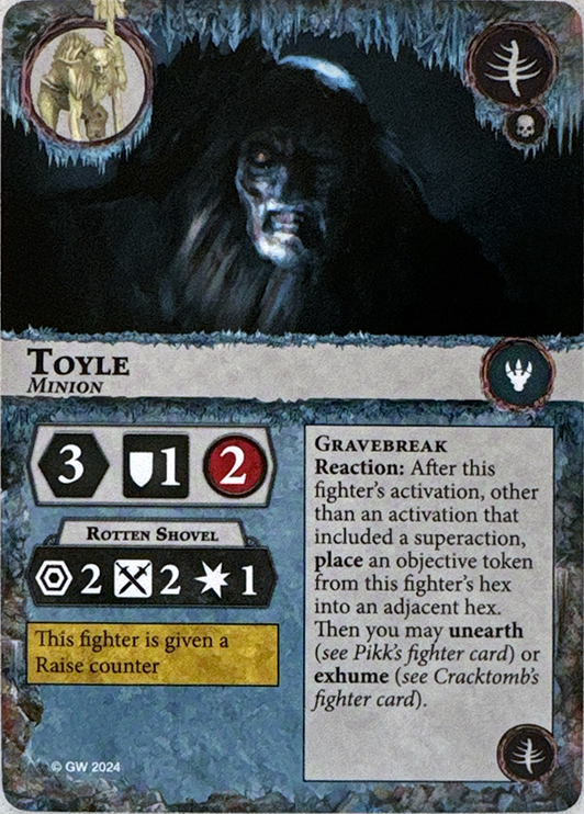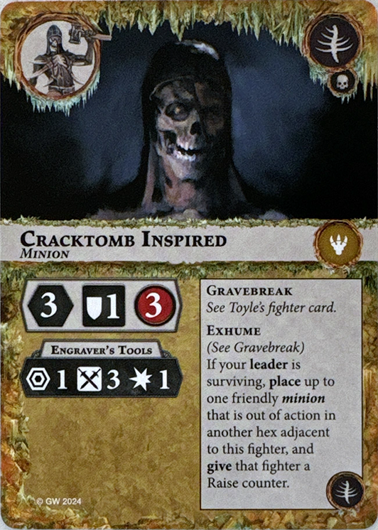Reaction: Play this after a friendly minion is taken out of action. Place that minion within 1 hex of an objective token in your territory, then give that fighter a Raise counter and either a Move token or a Charge token. | - | - |